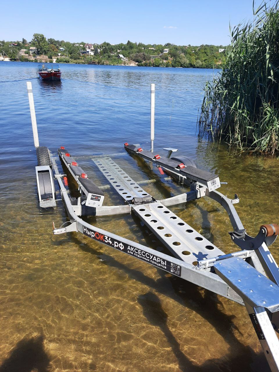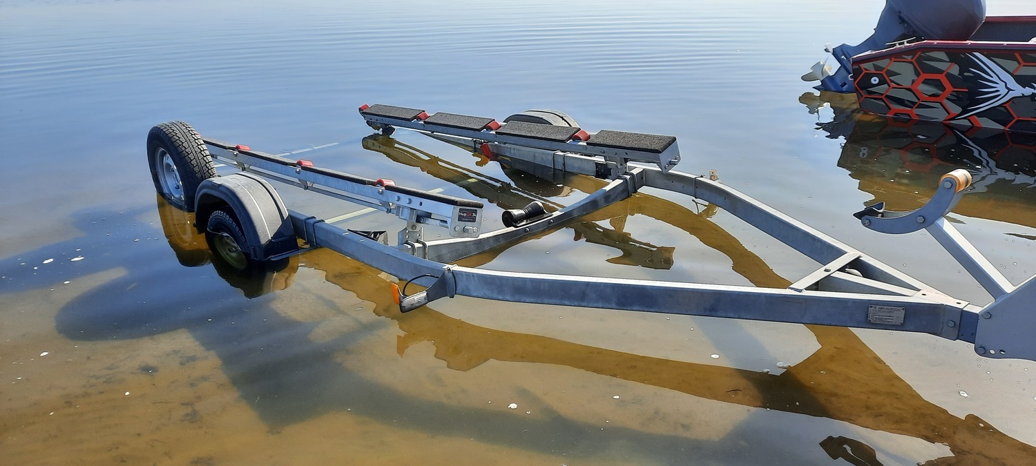 В транспортном положении ролики утоплены, судно перевозится на ложементах. Для облегчения спуска/подъема на мелководье ролики поднимаются из ложементов, лодка скатывается по ним.